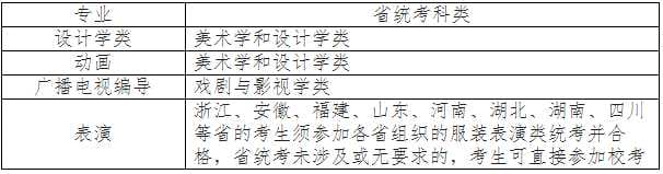 根据我校艺术类专业录取原则,各省有统考要求的专业,考生须参加所在省(自治区、直辖市)组织的相应科类统考并合格,省统考科类和统考子科类以各省公布的为准。我校各专业对应的省统考科类如下。